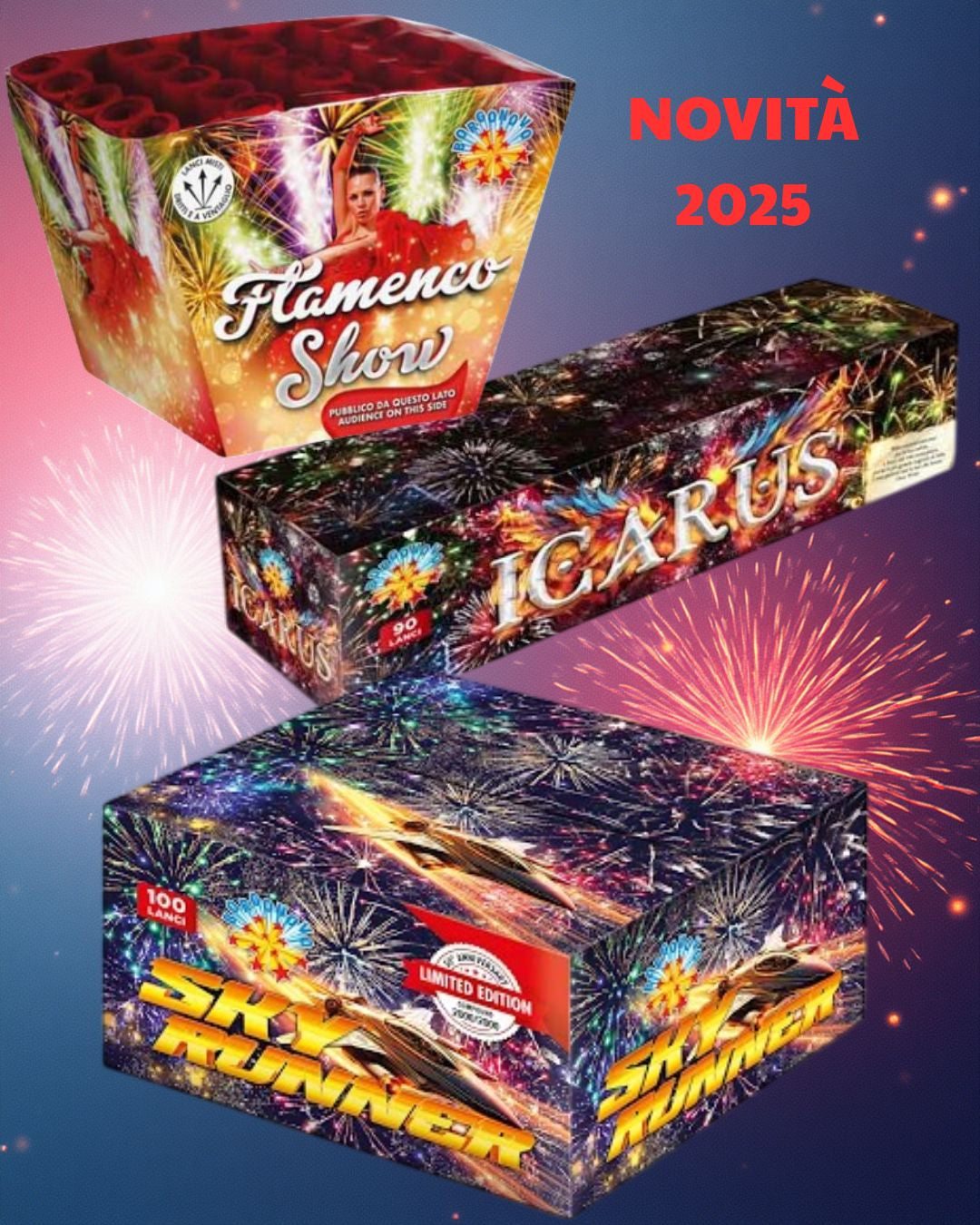 Un’ampia selezione di fuochi d’artificio "U. Borgonovo s.r.l.", azienda italiana leader del settore. Ciascun prodotto è marcato CE per garantire alti standard qualitativi e rispetto per persone, animali e ambiente
